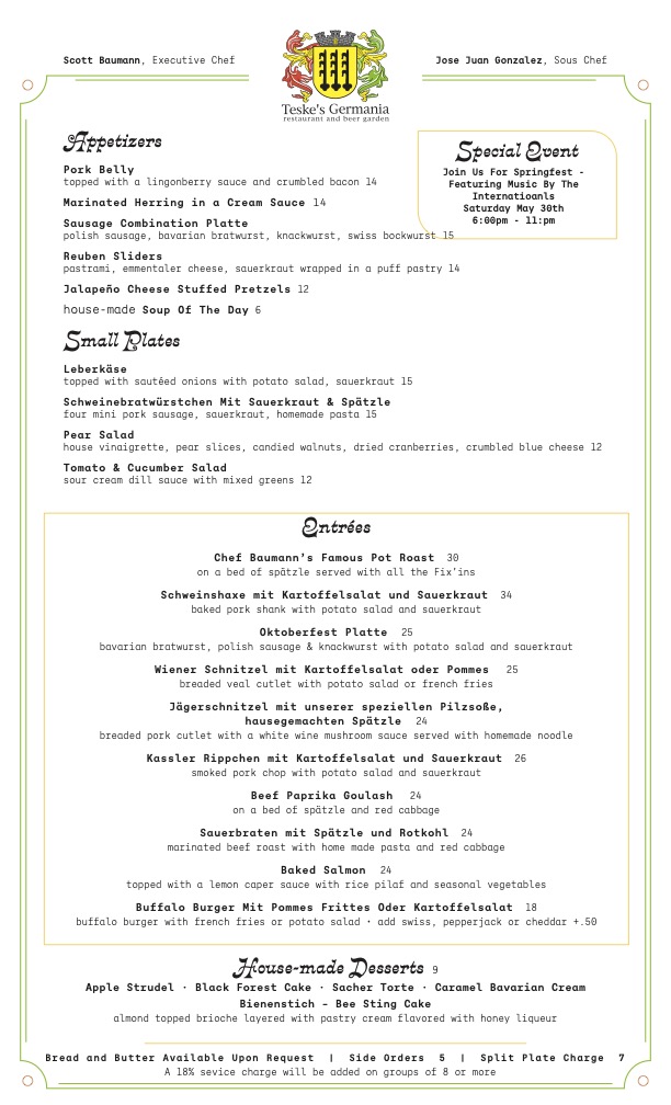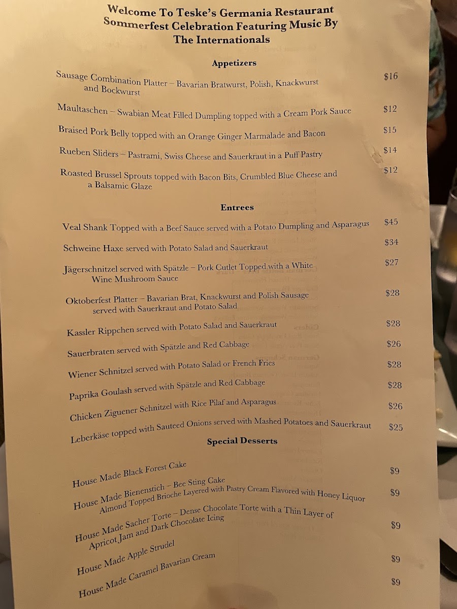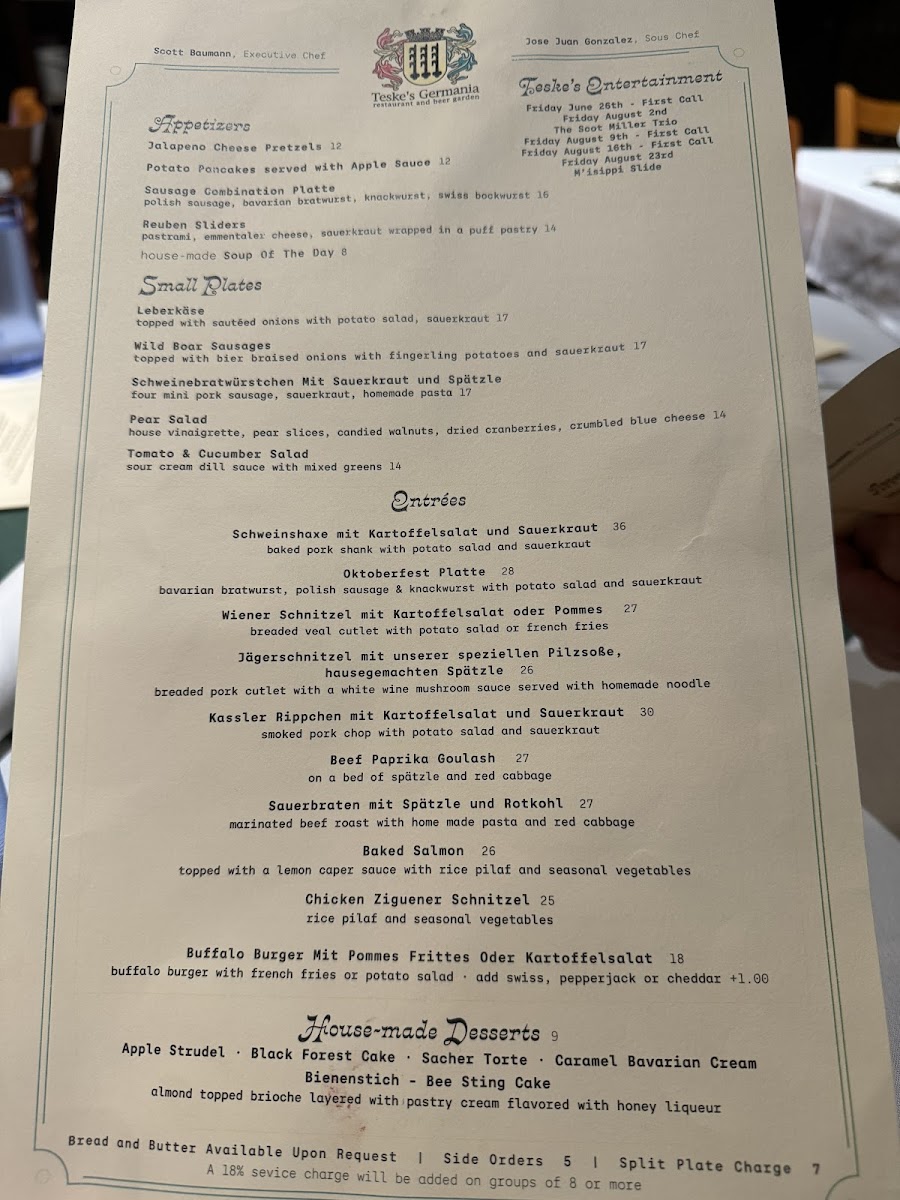 The dining experience at Teske's Germania is not just about the food; it's about the ambiance as well. Diners appreciate the liveliness of the space, especially when live music fills the air. A review from Kathy Boyer highlights the enjoyment of dining with a band performing blues in the beer garden, adding a festive touch to the evening. Many guests have praised the attentive service from the staff, who are eager to ensure you have a memorable meal without feeling rushed – a crucial factor that makes a dining experience truly exceptional.