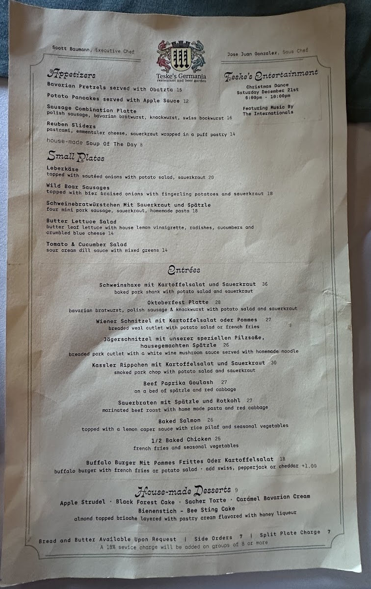 While opinions may vary on certain dishes, overall, Teske's Germania consistently garners positive feedback for its generosity in portion sizes and the flavorful authenticity of its menu. As Lila C noted, you really do get what you pay for, making it a worthwhile choice for anyone craving traditional German flavors.